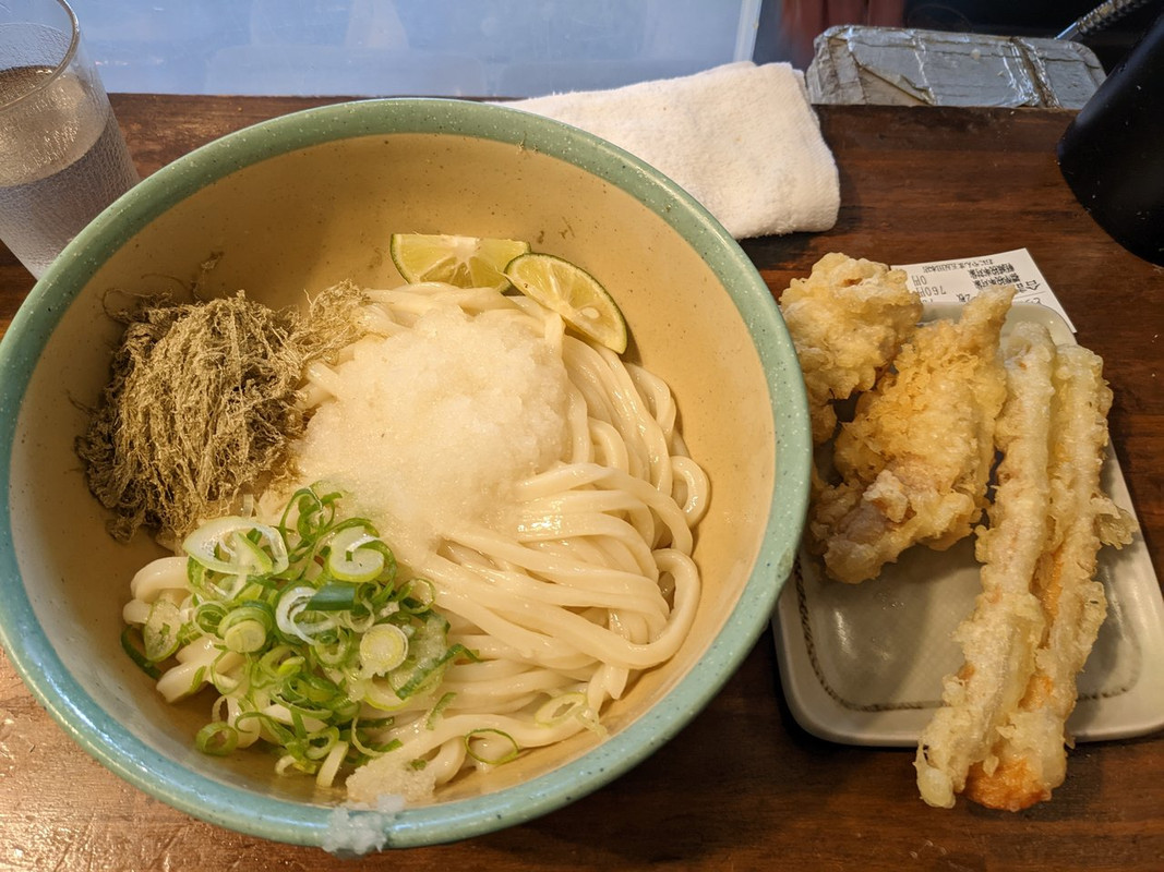 UdonUdon, poulet et surimi fris dans un restaurant sous la gare de Gotanda. Nouilles longues et vraiment moelleuse, je mangerais ça tout le temps.